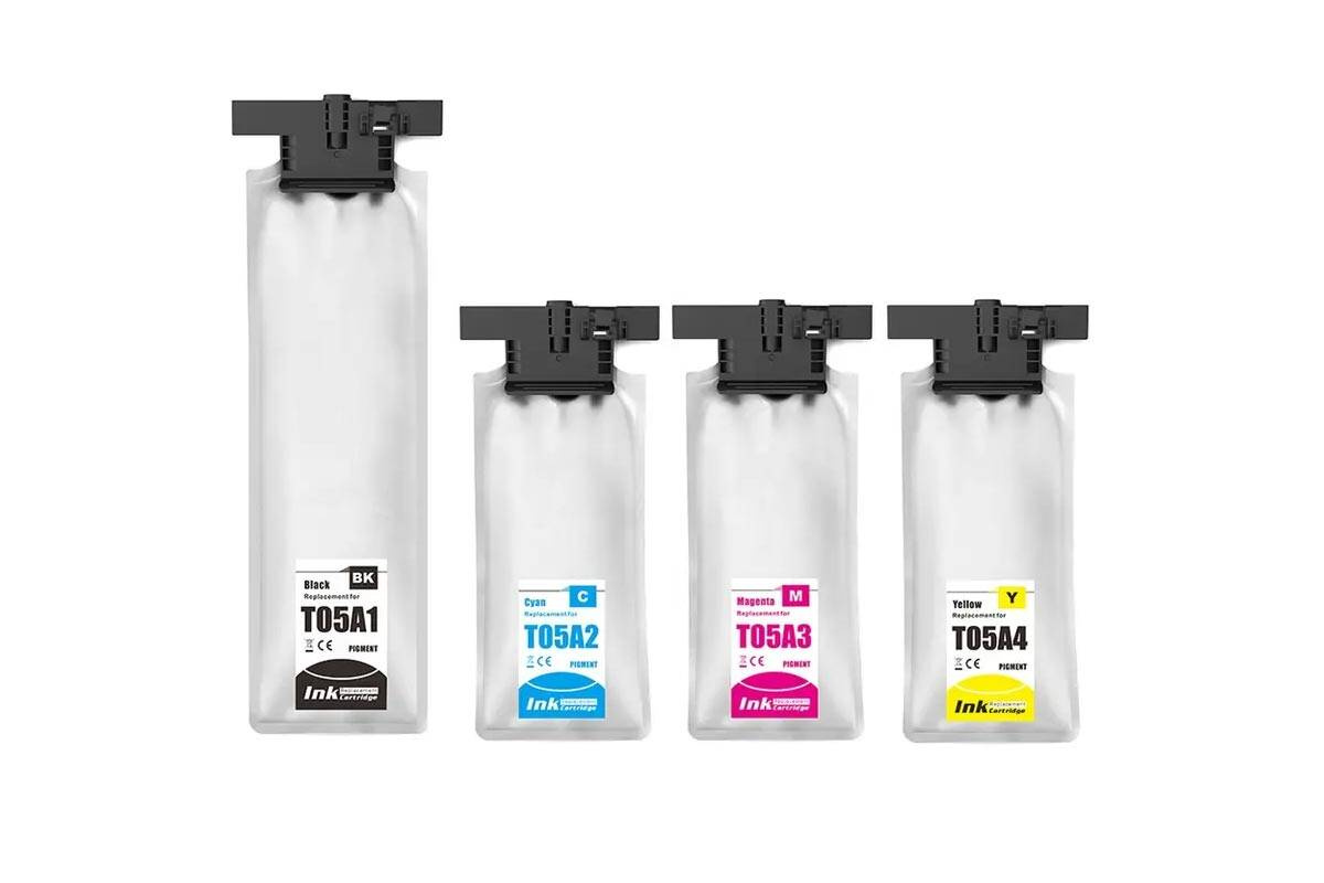 Tusz nieregenerowany, nowy zamiennik. Komplet 4 sztuk, CMYK. Wydajność 20000 stron czarny, 20000 stron kolory CMY. Oryginalny kod producenta: T05A1.